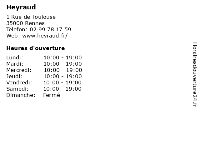 | Vendredi | 10:00-19:00 |