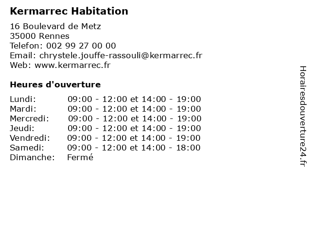 | Mardi | 09:00-12:00 et 14:00-19:00 |