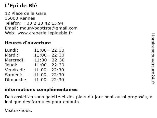 | Dimanche | 11:00-22:30 |