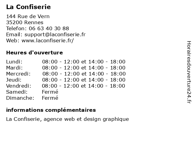 | Lundi | 08:00-12:00 et 14:00-18:00 |