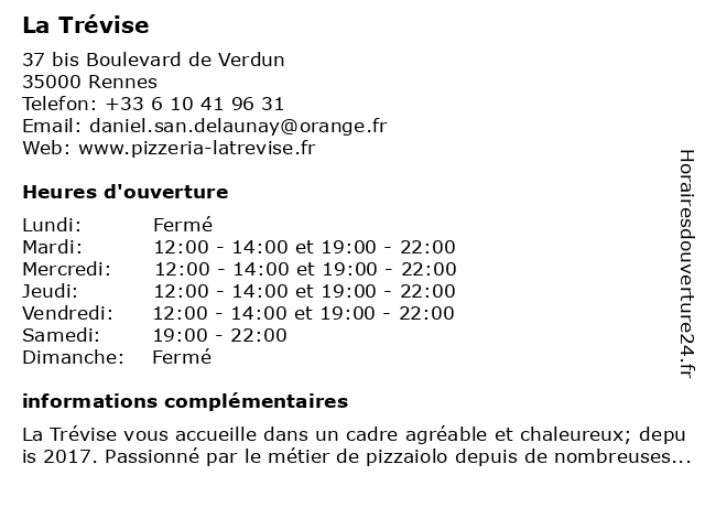 La Trévise vous accueille dans un cadre agréable et chaleureux; depuis 2017. Passionné par le métier de pizzaiolo depuis de nombreuses années, j'ai fait une formation dans une école reconnu...