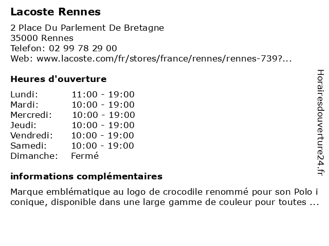 Termes de recherche pour Lacoste Rennes:rennes, maroquinerie, lacoste, articles de sport, magasin de chaussures, magasin de vêtements pour enfants, magasin de vêtements pour hommes, magasin de vêtements pour femmes, magasin de vêtements de sport, magasin d’accessoires de mode |