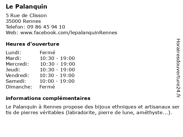 1 Le Palanquin (Distance: 0,03 km) 5 Rue de Clisson, 35000 Rennes bijouterie, bijoux, bracelets, horlogerie, le, palanquin 2 June Store Bijoux (Distance: 0,00 km) 2 Rue de Clisson, 35000 Rennes bijoux, bracelets, horlogerie, june, store 3 Bazar Rose (Distance: 0,06 km) 1 Rue Rallier du Baty, 35000 Rennes artisanat, bazar, bijoux, bracelets, horlogerie, rose 4 Mahé-Dulon - Bijoutier (Distance: 0,08 km) 7 rue de Toulouse, 35000 Rennes bijouterie, bijoutier, bijoux, création, diamant, dulon, horloger, mahé, or 5 Prieur Joaillier Horloger - Détaillant Officiel ROLEX (Distance: 0,30 km) 3 Place Du Parlement De Bretagne, 35000 Rennes détaillant, horloger, joaillier, officiel, prieur, rolex 6 Compagnie des Ors (Distance: 3,20 km) 5 Rue du Bosphore, 35200 Rennes bijouterie, bijoutier, bijoux, compagnie, des, montres, ors |