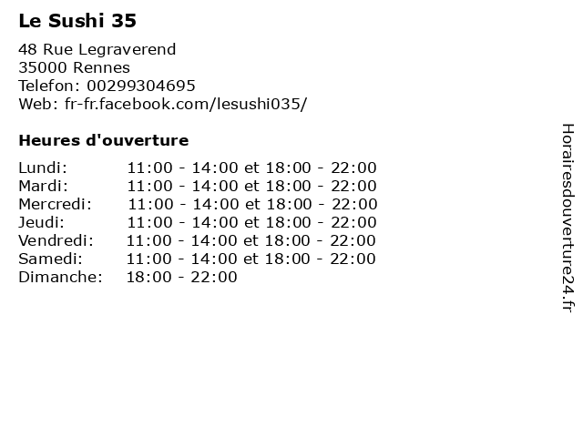 | Vendredi | 11:00-14:00 et 18:00-22:00 |