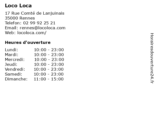| Lundi | 10:00-23:00 |
