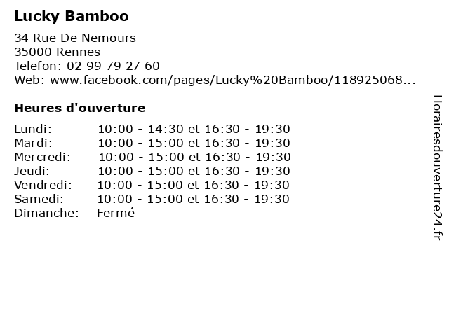 | Lundi | 10:00-14:30 et 16:30-19:30 |
