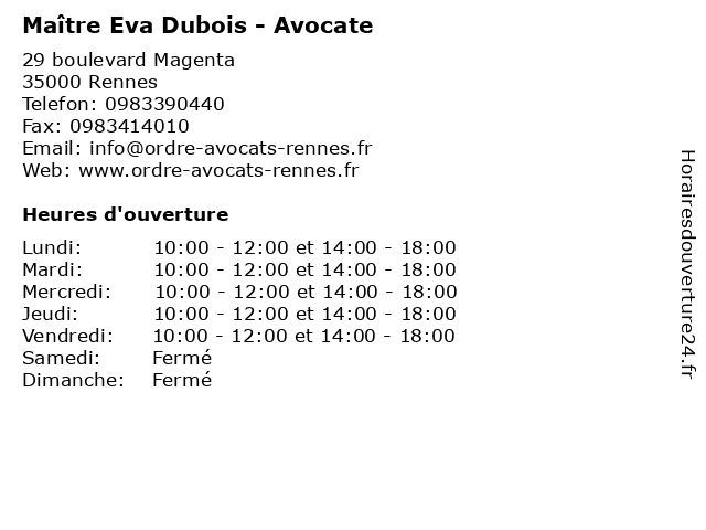 | Lundi | 10:00-12:00 et 14:00-18:00 |