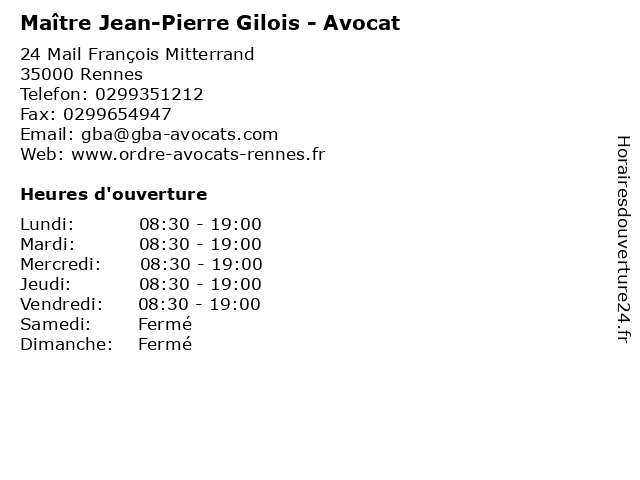 | Vendredi | 08:30-19:00 |
