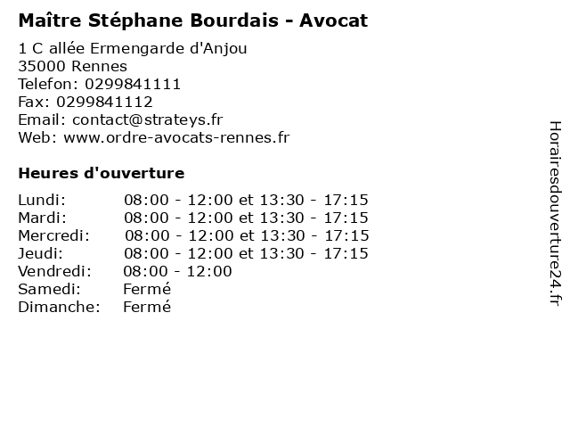 | Mardi | 08:00-12:00 et 13:30-17:15 |