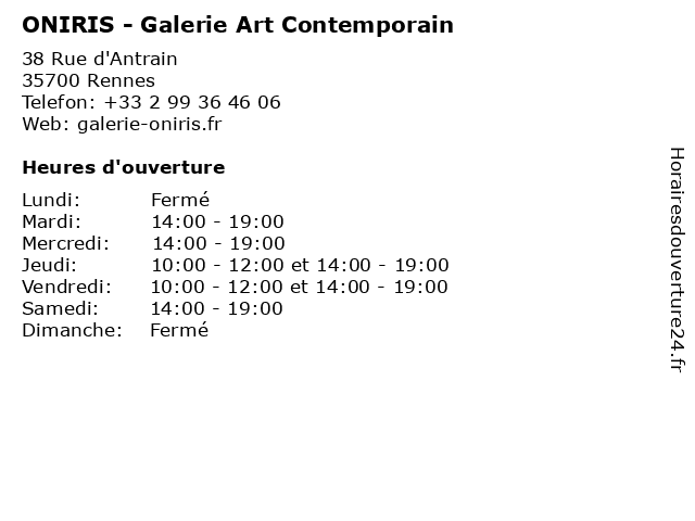 | Vendredi | 10:00-12:00 et 14:00-19:00 |