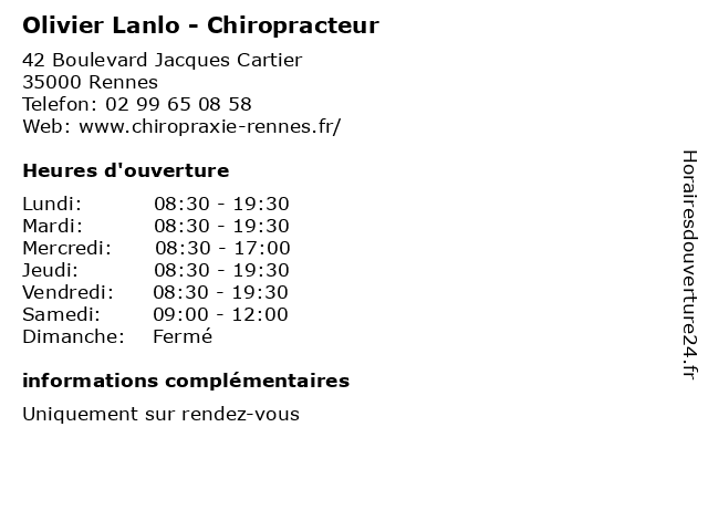 | Lundi | 08:30-19:30 |