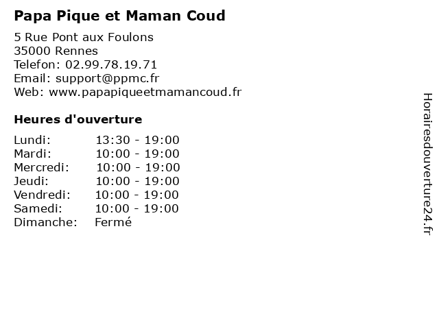 1 Les Fils à Maman (Distance: 0,08 km) 11 Rue Du Champ Jacquet, 35000 Rennes brasserie, burger, fils, les, maman, restaurants, restauration, west 2 Les Fils à Maman (Distance: 0,13 km) 11 rue du Champ Jacquet, 35000 Rennes burger, fils, les, maman, restaurant, traditionnel, varié 3 Le Bun Bo de Maman (Distance: 0,57 km) 58 Rue Saint-Malo, 35000 Rennes asiatique, bo, bun, de, le, maman, rapide, restaurant, restauration, vietnam, vietnamienne 4 Maman Poulpe Créations (Distance: 2,23 km) 3 Rue Général Nicolet, 35200 Rennes bébé, créations, créatrice bébé, fait main, gigoteuse originale, lingettes lavables, maman, maman poulpe, panière de rangement, poulpe, protège carnet de santé, trousseau de naissance, turbulette bébé 5 Pique-Prune (Distance: 2,76 km) 132 Rue Eugène Pottier, 35000 Rennes business, foods, pique, prune, restaurants 6 Les Burgers de Papa (Distance: 3,43 km) 5 Rue du Bosphore, 35200 Rennes apéritifs, boissons, burgers, de, les, papa, restaurant |