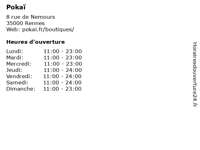 | Vendredi | 11:00-24:00 |