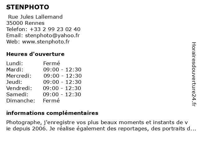Horaires d'ouverture |
