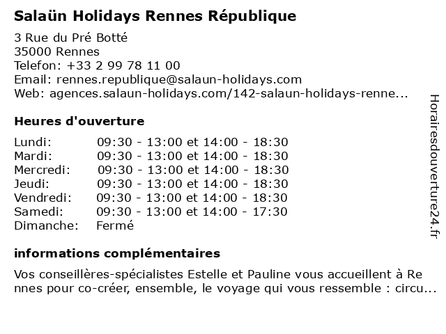 | Lundi | 09:30-13:00 et 14:00-18:30 |