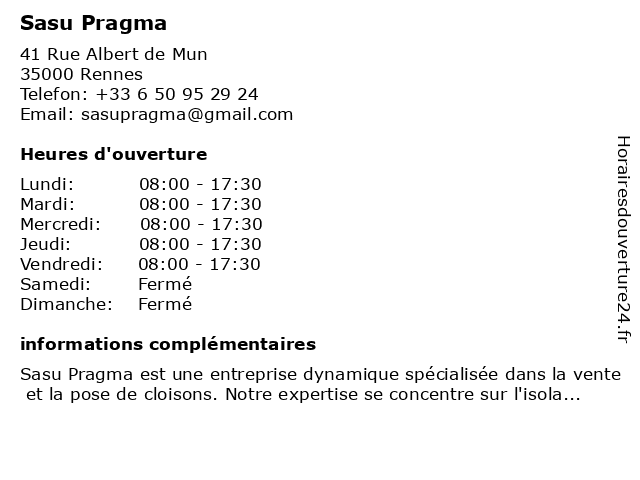 | Lundi | 08:00-17:30 |