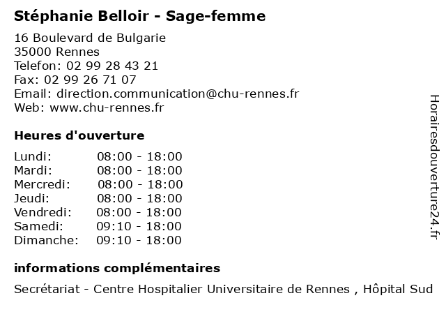 1 Stéphanie - Professeur de musique (Distance: 1,51 km) 14 Rue Louis Gohier, 35200 Rennes de, musique, professeur, stéphanie 2 Dr Stéphanie Werner-Leyval - Rhumatologue (Distance: 1,55 km) 21 Boulevard Franklin Roosevelt, 35200 Rennes consultation, docteur, dr, leyval, médecins, rhumatologie, rhumatologue, santé, stéphanie, werner 3 Stéphanie Hivert - Naturopathe (Distance: 1,73 km) 5 Allée de la Grande Treille, 35200 Rennes hivert, medecin, naturopathe, plante, sante, stéphanie 4 Dr Stéphanie Bonnel Morin - Radiologue (Distance: 2,99 km) 63 Rue Dupont des Loges, 35000 Rennes bonnel, consultation, docteur, dr, med, morin, médecin, médecine, radiologue, stéphanie, traitement 5 Dr Stéphanie Bonnel-Morin - Radiologue (Distance: 3,07 km) 100 avenue André Bonnin, 35135 Chantepie bonnel, consultation, docteur, dr, med, morin, médecin, médecine, radiologue, stéphanie, traitement 6 Maître Stéphanie Pick - Avocate (Distance: 3,27 km) 9 Place du Général Koenig, 35000 Rennes avocate, avocats, civils, droits, juridiques, maître, pick, stéphanie |