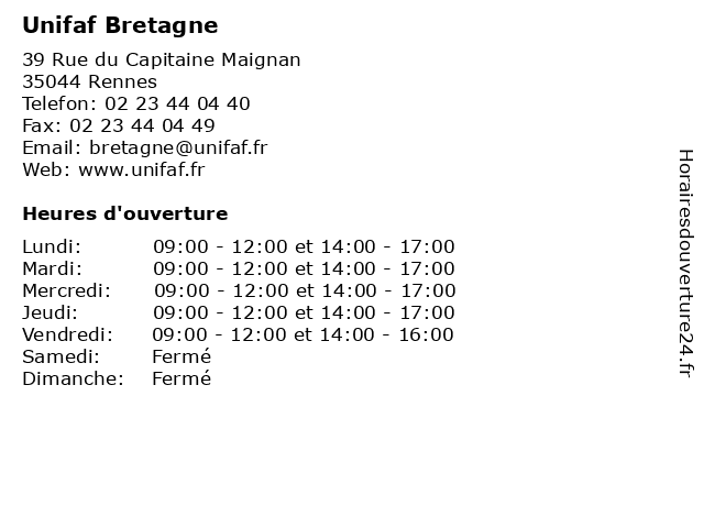 Lundi | 09:00-12:00 et 14:00-17:00 |