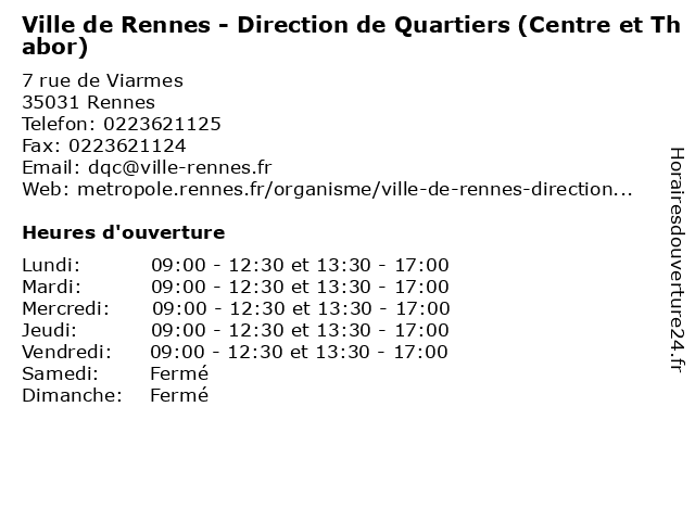 | Mardi | 09:00-12:30 et 13:30-17:00 |