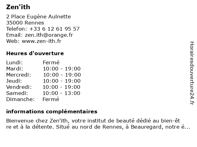 1 Rennes Zen (Distance: 3,05 km) 30 rue Alphonse Milon, 35760 Saint-Grégoire bien-entre, massages, relaxation, rennes, santé, thérapies, zen 2 Zen Habitat Rennes (Distance: 4,98 km) 41 Route de Saint-Malo, 35760 Saint-Grégoire habitat, rennes, zen 4 Zen Concept Paysages (Distance: 5,58 km) 12 Boulevard P Dumaine de la Josserie, 35740 Pacé concept, paysages, zen 5 La Grenouille Zen Brigitte Boulangé & Chamae Bien-être (Distance: 8,23 km) 19 Rue Pré des Louvrais, 35650 Le Rheu bien, boulangé, brigitte, chamae, grenouille, la, zen, être 6 Everblue - Zen & O (Distance: 8,36 km) n/c La Haie Gautrais, 35170 Bruz accessoires, constructeur, everblue, piscine, traitement, zen |