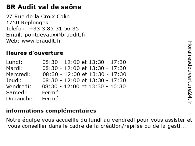 | Lundi | 08:30-12:00 et 13:30-17:30 |
