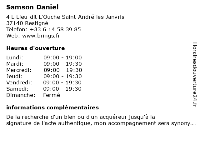 | Horaires d'ouverture | ||