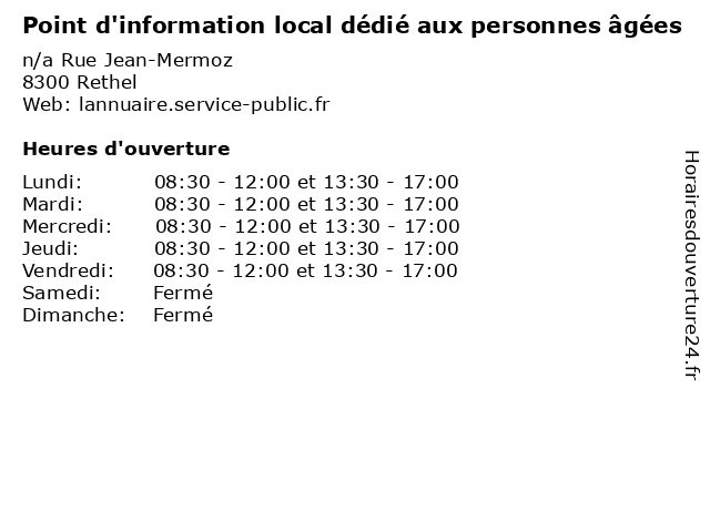 | Lundi | 08:30-12:00 et 13:30-17:00 |