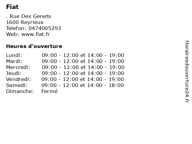 | Lundi | 09:00-12:00 et 14:00-19:00 |