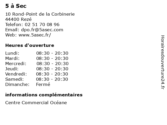 2 5 à Sec (Distance: 5,26 km) 2 Rue Pierre Mendès France, 44230 Saint-Sébastien-sur-Loire 5àsec, apprêt, expert textile, lavage, nettoyage, nettoyage à sec, repassage, sec 3 5 à Sec (Distance: 6,17 km) 22 Rue du Calvaire, 44000 Nantes apprêt, expert textile, lavage, nettoyage, nettoyage à sec, repassage, sec 4 5 à Sec (Distance: 6,39 km) 3 Place Saint Pierre, 44000 Nantes apprêt, expert textile, lavage, nettoyage, nettoyage à sec, repassage, sec 6 5 à Sec (Distance: 10,40 km) - Avenue des Thébaudières, 44800 Saint-Herblain apprêt, expert textile, lavage, nettoyage, nettoyage à sec, repassage, sec |