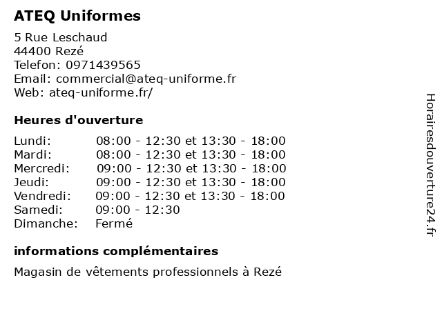 | Mercredi | 09:00-12:30 et 13:30-18:00 |