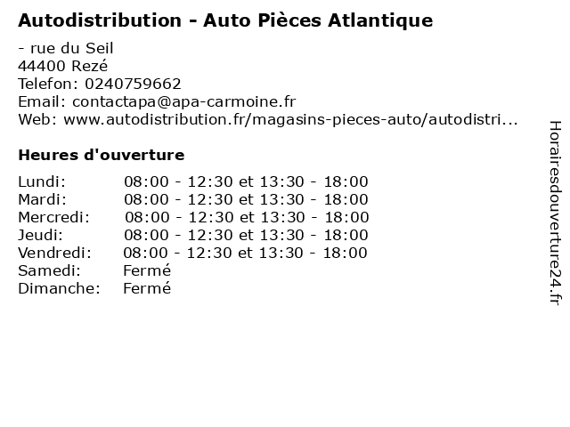 | Mercredi | 08:00-12:30 et 13:30-18:00 |