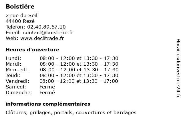 | Lundi | 08:00-12:00 et 13:30-17:30 |