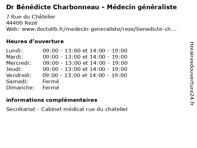 | Lundi | 09:00-13:00 et 14:00-19:00 |