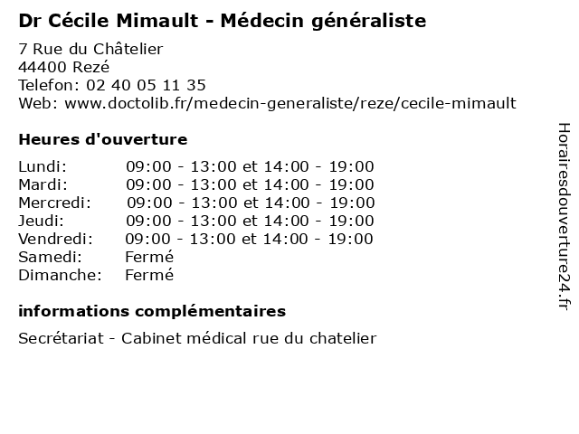 | Lundi | 09:00-13:00 et 14:00-19:00 |