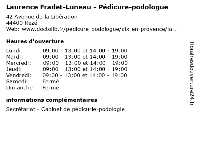 | Lundi | 09:00-13:00 et 14:00-19:00 |