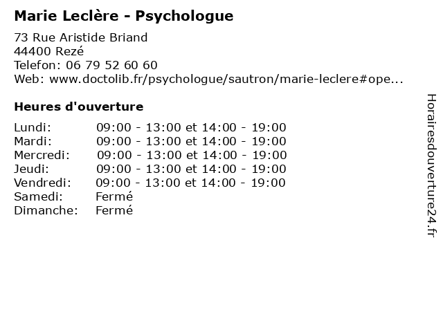 | Lundi | 09:00-13:00 et 14:00-19:00 |