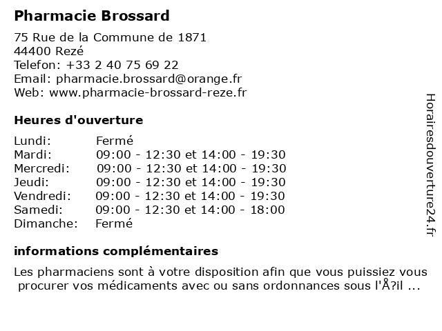 | Samedi | 09:00-12:30 et 14:00-18:00 |