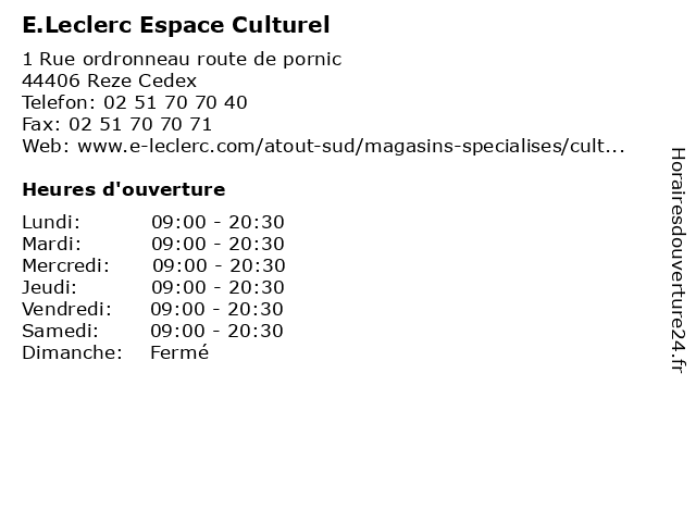 1 E.Leclerc Espace Culturel (Distance: 4,17 km) 10 Rond point de la corbinerie, 44400 Rezé culturel, e.leclerc, espace, fournisseur de matériel audiovisuel, librairies, magasin de jeux vidéo, magasin de musique, matériel de photographie, matériel vidéo, services et matériel vidéo 2 E.Leclerc Espace culturel (Distance: 5,42 km) . Rue James Cook, 44807 Saint Herblain culturel, e.leclerc, espace, service, services, services à la personne 3 E.Leclerc Espace Culturel (Distance: 5,72 km) Atlantis pôle commercial atlantis, 44807 Saint Herblain Cedex culturel, e.leclerc, espace, fournisseur de matériel audiovisuel, librairies, magasin de jeux vidéo, magasin de musique, matériel de photographie, matériel vidéo, services et matériel vidéo 4 E.Leclerc Espace Culturel (Distance: 7,57 km) 14 Route de paris, 44305 Nantes Cedex 03 culturel, e.leclerc, espace, fournisseur de matériel audiovisuel, librairies, magasin de jeux vidéo, magasin de musique, matériel de photographie, matériel vidéo, services et matériel vidéo 5 E.Leclerc Espace culturel (Distance: 7,80 km) 1 Rue de la Conraie, 44700 Orvault culturel, e.leclerc, espace, service, services, services à la personne 6 E.Leclerc Espace Culturel (Distance: 7,81 km) 1 rue de la Conraie, 44700 Orvault culturel, e.leclerc, espace, fournisseur de matériel audiovisuel, librairies, magasin de jeux vidéo, magasin de musique, matériel de photographie, matériel vidéo, services et matériel vidéo |