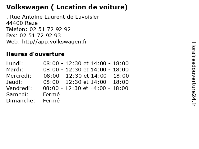 1 Volkswagen (Distance: 0,00 km) . Rue Antoine Laurent de Lavoisier, 44400 Reze automobiles, concessionnaire, garage, motos, volkswagen 2 Volkswagen (Activités Véhicules Neufs) (Distance: 0,00 km) . Rue Antoine Laurent de Lavoisier, 44400 Reze activités, automobiles, concessionnaire, garage, motos, neufs, volkswagen, véhicules 3 Volkswagen (Activités Véhicules dOccasion ) (Distance: 0,00 km) . Rue Antoine Laurent de Lavoisier, 44400 Reze activités, automobiles, concessionnaire, doccasion, garage, motos, volkswagen, véhicules 4 Volkswagen ( Atelier Mécanique) (Distance: 0,00 km) . Rue Antoine Laurent de Lavoisier, 44400 Reze atelier, automobiles, concessionnaire, garage, motos, mécanique, volkswagen 5 Volkswagen (Vente Pièces dOrigine) (Distance: 0,00 km) . Rue Antoine Laurent de Lavoisier, 44400 Reze automobiles, concessionnaire, dorigine, garage, motos, pièces, vente, volkswagen 6 Ford - Mustière Sud Loire - Location (Distance: 0,07 km) 4 Rue Antoine-Laurent de Lavoisier, 44400 Rezé ford, location, loire, mustière, révisions, service, services, services d'automobiles, sud |