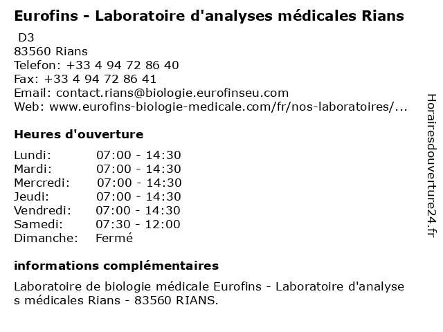 Termes de recherche pour Eurofins - Laboratoire d'analyses médicales Rians:d'analyses, laboratoire, médicales, rians, eurofins |