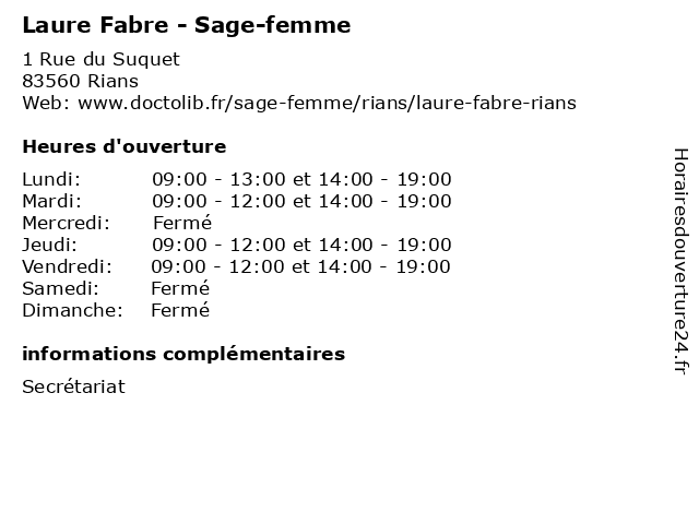 | Mardi | 09:00-12:00 et 14:00-19:00 |