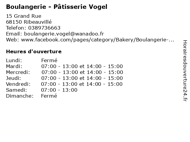 | Lundi | Fermé |