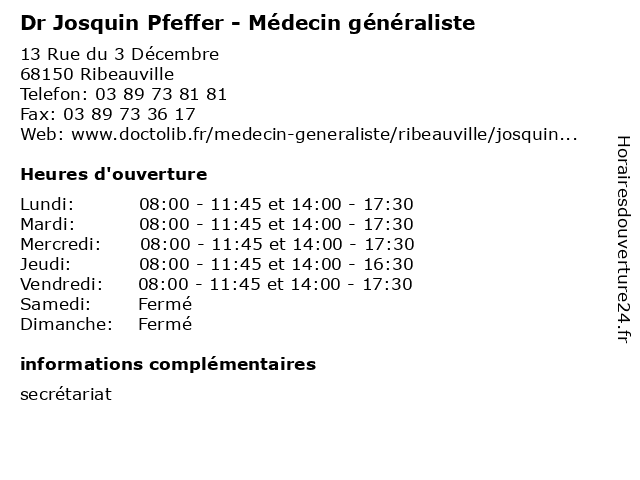 | Jeudi | 08:00-11:45 et 14:00-16:30 |