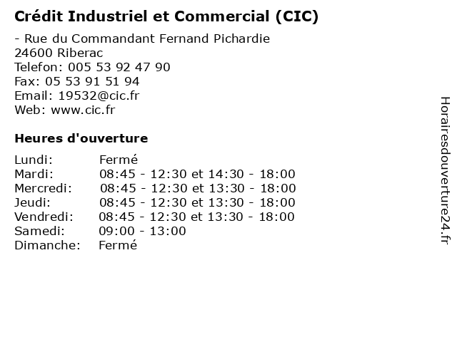 | Lundi | Fermé |
