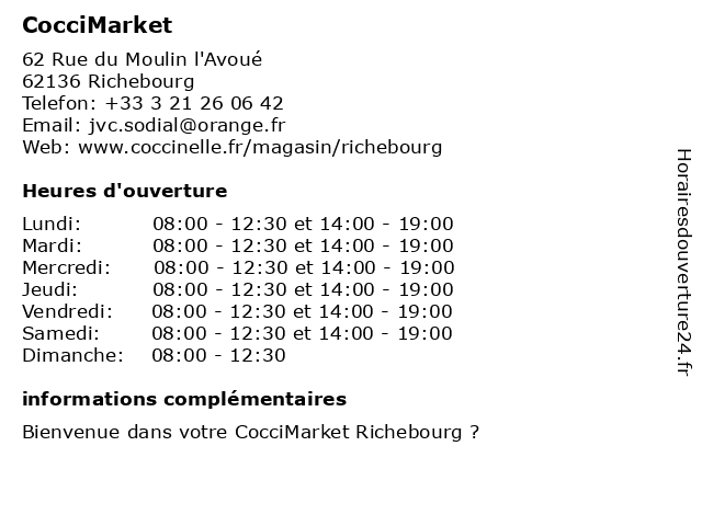 | Mercredi | 08:00-12:30 et 14:00-19:00 |