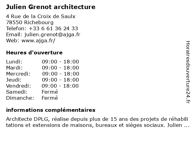 1 EHPAD - Résidence Le Bon Accueil-Julien Quet (Distance: 13,72 km) 13 rue Quesnay, 78490 Montfort-l'Amaury accueil, bon, ehpad, foyer, hébergement, julien, le, quet, retraite, résidence 2 3 École élémentaire publique Julien Cochin (Distance: 15,22 km) 64 Grande Rue, 78580 Jumeauville cochin, cours, education, julien, publique, services, école, élémentaire 4 Nicolas Julien - Pédicure-podologue (Distance: 17,62 km) 4 Rue Victor Hugo, 28500 Cherisy julien, nicolas, pieds, podologue, pédicure, soins 5 Dr Julien Wipff - Rhumatologue (Distance: 19,94 km) 57 Boulevard du Maréchal Juin, 78200 Mantes-la-Jolie dr, julien, rhumatisme, rhumatologue, sante, soins, wipff 6 La Maison Des Travaux (Distance: 4,74 km) 6 Rue de la Prévoté, 78550 Houdan architecte, architecture, des, décoration, extension, généraux, la, maison, rénovation, travaux |
