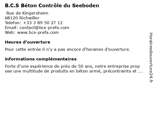 | Appeler B.C.S Béton Contrôle du Seeboden | |