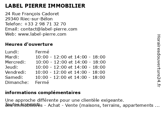1 LABEL PIERRE IMMOBILIER (Distance: 11,41 km) 9B Place Hervo, 29300 Quimperlé immobilier, label, pierre 2 Garage A.D.O. Label Occasion (Distance: 21,56 km) 21 Rue Joliot-Curie, 56530 Queven a.d.o., accessories, auto, entretien, garage, label, mécanique automobiles, occasion, top garage 4 Running Conseil - Tri Running Passion Label (Distance: 26,48 km) 5 boulevard Maréchal Joffre, 56100 Lorient chaussures, conseil, label, magasin, passion, running, sport, tri, vêtements 5 6 Esprit Immobilier (Distance: 0,18 km) . place de l'Eglise, 29430 Riec sur Bélon agence, esprit, gestion, immobilier, location, transactions, vente |