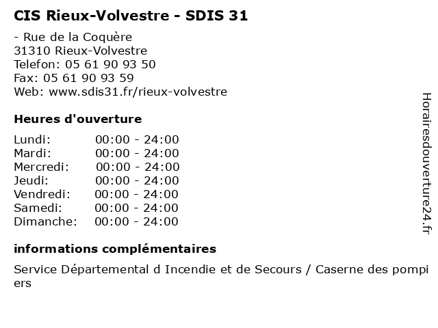 | Samedi | 00:00-24:00 |