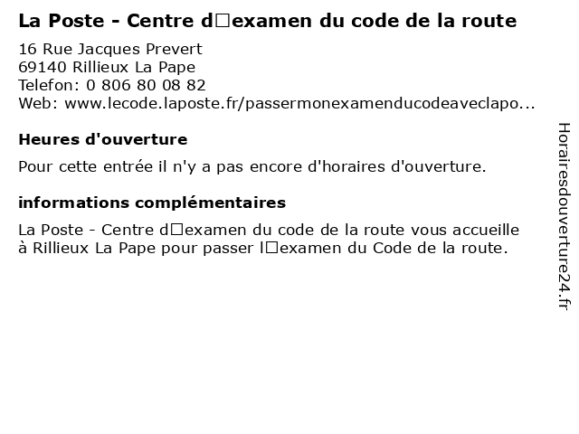 | Appeler La Poste - Centre d’examen du code de la route | |